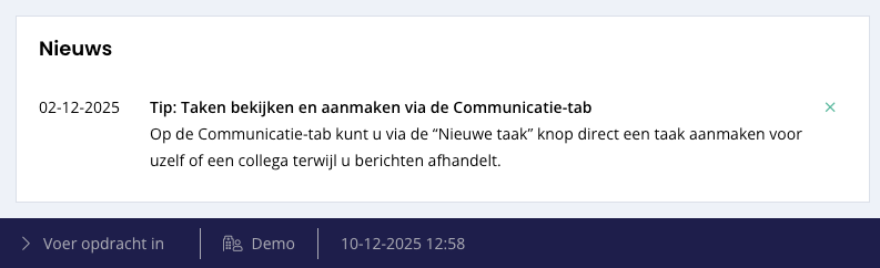 In de webbased versie van Bricks Huisarts is het mogelijk om de actuele datum en tijd weer te geven in de informatie balk, de blauwe balk aan de onderkant van uw scherm.